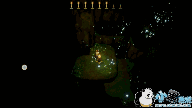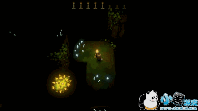将所有蜡烛找齐之后,跳上右侧的叶子上往右上走到发光点,走进光点的中心即可通关。