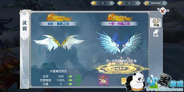 灵羽的外观同样也可以凸显出玩家的等级与装备豪华程度。同样,灵羽也需要升级进阶后可以解锁新的形象,灵羽进阶的等级越高后面的外观形象就更加酷炫,并且属性上有极大的提升,为你加持更多战斗属性。