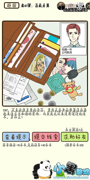 答案:老公的钥匙上竟然会有小熊的钥匙链,老公怎么会挂着这么幼稚有可爱的钥匙扣呢?感觉很诡异!