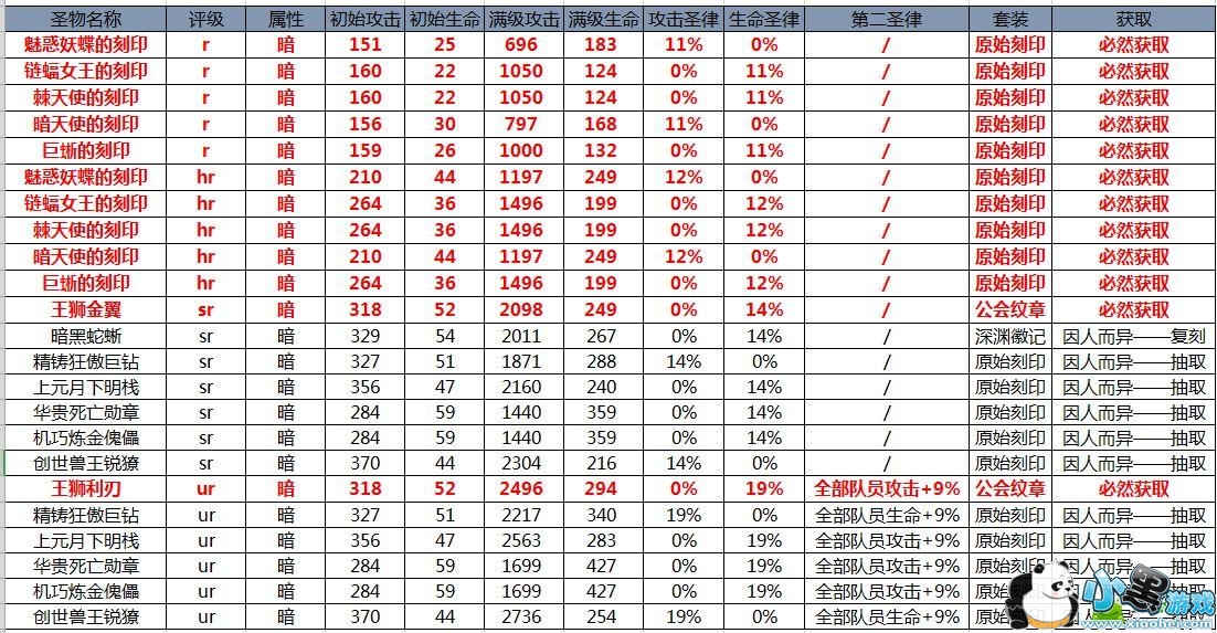 暗队人人都能获取的攻击圣律的圣物(原始刻印)有四个,公会纹章是加生命的,单纯从圣物佩戴的角度看,总计可以加46%的攻击力,其中两个还是r级的,攻击力加的少,基础数值还亏,不太划算。