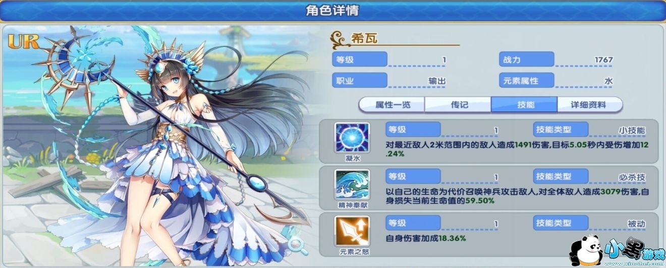 评价:无愧核平的强度,输出不逊色于莉莉丝,综合强度非常高。小技能提升全队伤害,被动提升自身伤害。水属性本身又很适合打BOSS。推荐。
