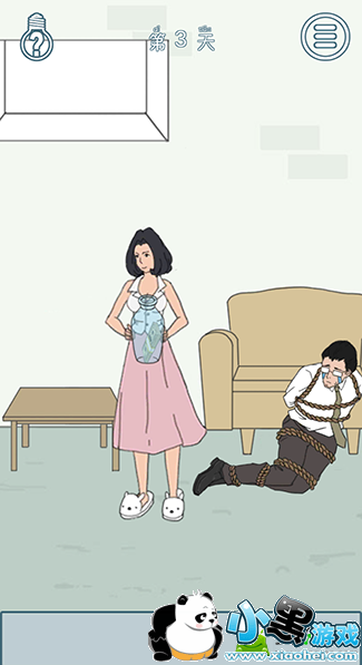 答案:在这一关,我们可以看到我们的桌子上得到绳子,再将老公捆上,我们在点击上方的花瓶,拿到里面的私房钱,就可以顺利通关啦!