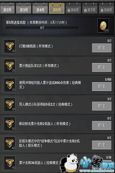 该任务需要鸡友们选择娱乐模式-战争模式,这个玩法会在很小的一片安全区内进行乱斗,所有人落地就会持有配了满弹夹的同类型枪,如全冲锋枪、全突击步枪、全栓动狙击等……被击败后会有20秒的复活时间,鸡友们完全不用担心快速成盒,哪里人多就跑向哪里就对了~