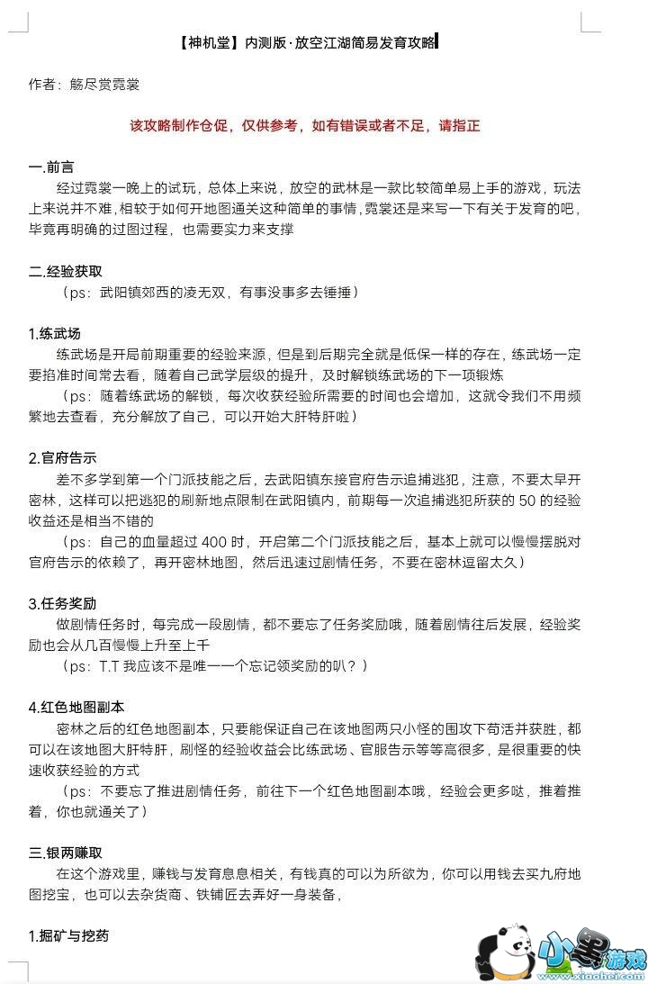 放空的武林副本发育攻略