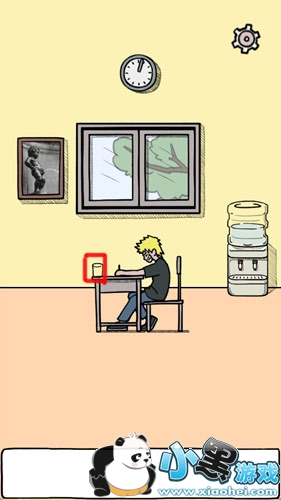 1、我们看见在考试的那个男生的桌子前面有一个杯子,我们点击杯子,就可以获得空杯。