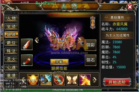 翅膀技能激活额外增加海量属性,还有经验属性暴击、韧性、暴击值加成。