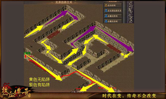 重点:几个法师轮流探测陷阱,用火墙标记,战道跟在后面,躲避火墙即可。