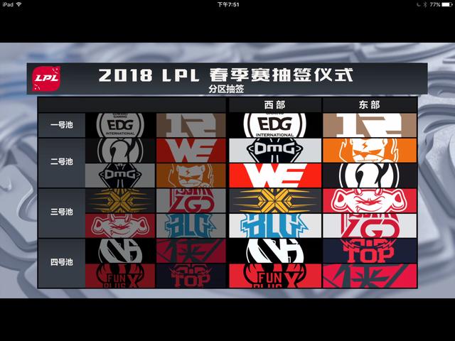 抽签的顺序是先绝对1号池,也就是EDG和RNG的分组,之后依次再进行2、3、4号队伍的抽签!根据先后顺序分别安排在东西赛区两组!