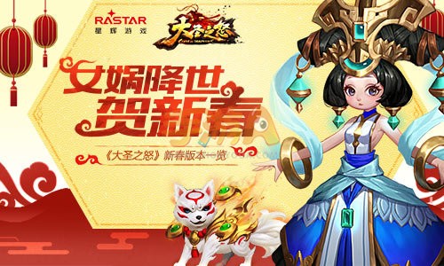 新春狂欢齐相聚,创世降临全民乐!随着春节的临近,《大圣之怒》手游新春版本也应约而来,为玩家送上满满的喜气与福利!在新春版本中,上古之神女娲恭贺三界新禧。更有瑞犬萌动新春,与全体小妖们一起新春快乐!