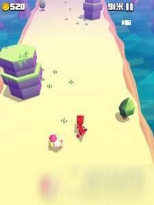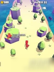 游戏操作还是比较简单的,只需要一根手指即可操作,玩家左右滑动,躲开树木和石头等等的障碍物。