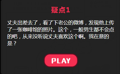 疑点1丈夫出差去了,看了下老公的微博,发现他上传了—张咖啡馆的照片。这个,一般男生都不会点的吧,从来没听说丈夫喜欢这个啊。我在意的是?