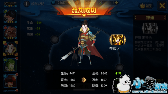凡是成功渡劫的伙伴都能够突破原有的局限,更大程度上的提高伙伴神通技能的属性加成。而神通的每一级提升都需要完成一次渡劫才能继续使伙伴的战力得到大幅提高哦~!