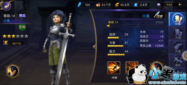初始属性:攻击:3 防御:8 血量:5 带兵上限:830 统帅:31 力量对比: 40 毅力:40