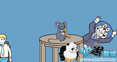 把铜锣烧放在桌上,扮演哆啦A梦的老板被吓晕后就能拿到手机。