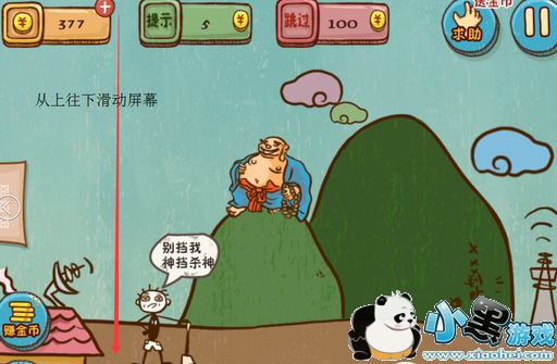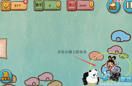 首先我们需要从上往下滑动屏幕(最好幅度大一些,免得碰到神仙或者山),然后点击出现在云朵上面的仙女,仙女就会下凡跟愚公进入到山脚下的房子里面生一堆孩子,把山挖走了。