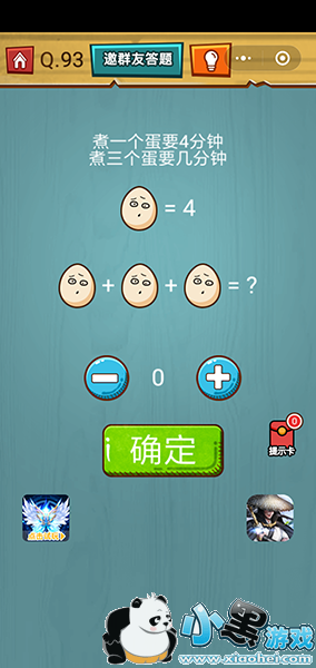 烧脑吃鸡大作战第93关:煮一个蛋要4分钟,煮三个蛋要几分钟?这题运用我们生活中的常识,不能按照数学的加减乘除来运算哦。下面请看小编整理的图文攻略。