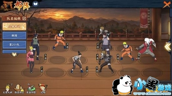 第五回合:鸣人奥义鸣人,风主刷新,鹿丸打断自来也。然后等自来也普攻后,月光疾风奥义召唤分身,一波群扁。