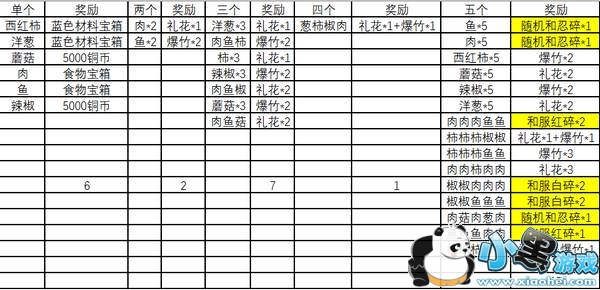 5肉=5鱼=1随机碎片礼盒