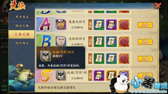 咒印佐助需要使用特别上忍之证、上忍之证和终末谷积分在忍者兑换中兑换碎片,合成获得。