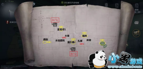 以往的地图均为正方形,而“疯人院”则是一张横向长方形的地形图,房间超多!以律师地图作为参照物,地图中有5个地窖刷新点,2个逃生大门,2个VIP房,众多标志性建筑(房间)具体分布位置如下图所示。