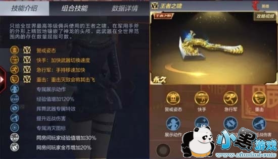 除此之外,王者之啸新增了隐刀技能,可以降低自身移动声音音量,说白了就是可以降低自身的脚步声,火线姐喜欢爆破刀人,此技能简直就是绝配。
