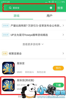 2.安装好后,打开好游快爆,点击右上角的搜索按钮,输入“星辰变”,待游戏出现后,点击下载按钮进行下载。