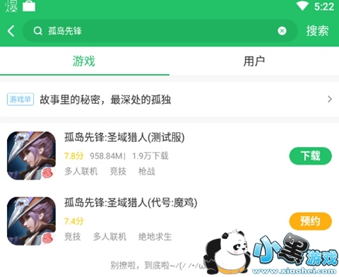 2.安装好后,打开好游快爆,点击右上角的搜索按钮,输入“孤岛先锋”,待游戏出现后,点击下载按钮进行下载安装。