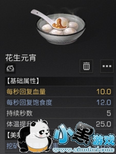 明日之后中除了能提高玩家不同能力的食物外,还有一些特殊的食物,活动限定食物,下面就一起来看一下花生元宵食物的属性吧。