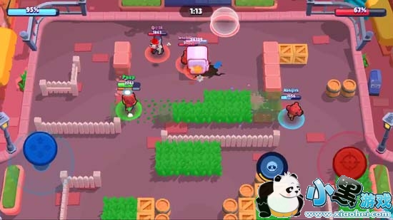 防守时尽量利用障碍和掩护逼退对手,如果我方的组合比较强势,可以直接压上去,不过不要冒进~优先击杀对手高输出伤害的角色,例如上面说到的Barley(扔酒瓶)和Dynamike(扔炸弹)等,另外时时关注自己的宝箱血量,不要被人家绕后了还不知道。
