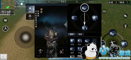 江湖求生中打坐不需要学习秘籍,只需要进行滑屏操作即可完成,如图所示!