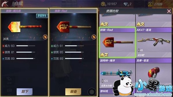 如图,铁锹-闹元宵和同品质的铁锹-Red相比,前者威力、便携低于后者,其他数据保持一致,即:论输出伤害,后者更为强势。因此,后者稍占优势。
