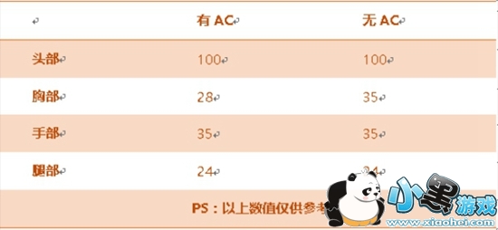 根据上述信息,我们可以看出:无论有无AC,只要被AK47-B击中头部则必然淘汰。其次,命中目标胸口,若其无AC,则仅需3枪,反之4枪,其他位置保持一致。