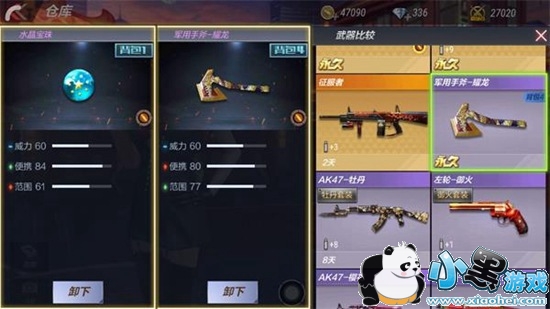 如图,水晶宝珠和同品质的军用手斧-耀龙相比,前者便携高于后者、范围低于后者,其他保持一致,即:论手持移速,前者占优;论输出范围,后者占优。