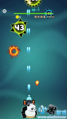 消灭病毒第五个副武器是一款紫色浮游炮,在游戏中会在飞机两侧搭载四个紫色浮游炮,遇到病毒敌人的时候四个浮游炮会自动出击围绕在病毒周围持续攻击病毒。 在敌人消灭完毕或者能量耗尽之后浮游炮会飞回充能。这款武器因为是四个浮游炮围绕攻击,可以说单体伤害是所有副武器里最高的,但是如果在面对满屏幕都是病毒的复杂场景,专攻单体伤害的这款副武器就不是非常实用了。
