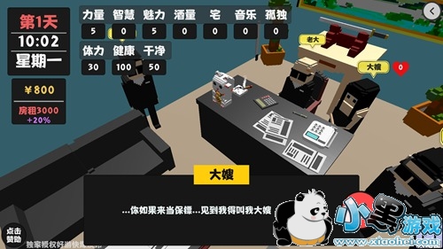 在接待所点击左边的“阿拉”,就会提示我们是否选择当保镖,当保镖可以增加我们的力量、好感,但是会降低体力和干净,当然最重要的是有工资。