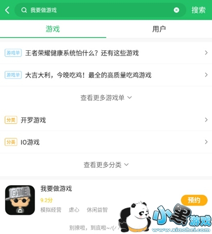 2.安装好后,打开好游快爆,点击右上角的搜索按钮,输入“我要做游戏”,待游戏出现后,点击预约按钮进行预约。