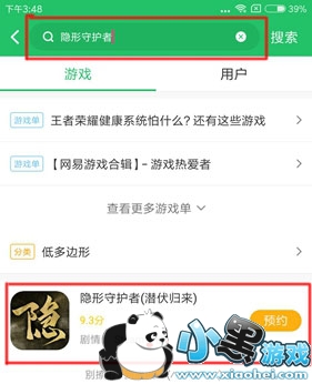 2.安装好后,打开好游快爆,点击右上角的搜索按钮,输入“隐形守护者”,待游戏出现后,点击预约按钮进行预约。