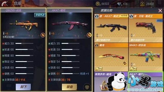 如图,QBZ95-战龙和同品质的AK47-樱花相比,前者射速、精度、稳定和主弹夹数高于后者,威力低于后者,即:论伤害,后者占优;但若论其他方面,前者显然占优。