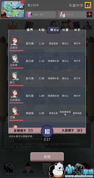 由于我的弟子天赋太高,会卡在功法限制顶峰,所以你也可以优先主功法点满,但如果你高天赋弟子不是很多,前期建议按我的来。