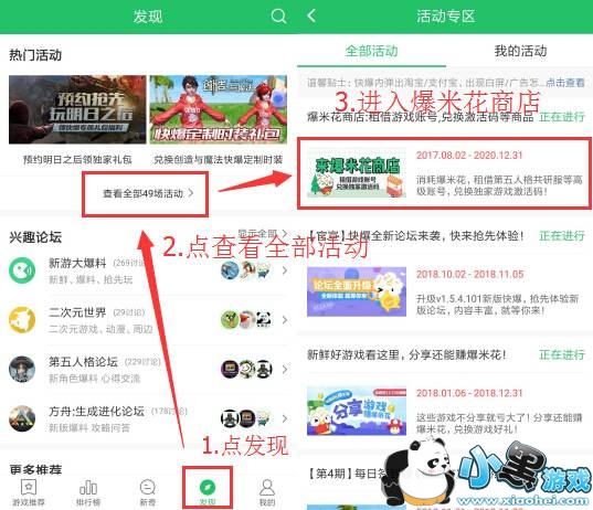 步骤一:在好游快爆底部点击【发现】-【活动】,点击【爆米花商店】