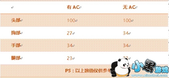 根据上述信息,我们可以看出:被AN94-迷彩命中头部,无论目标是否配置AC,都将被一击秒杀。其次,若目标佩戴有AC,那么命中胸部需4枪、反之则为3枪。至于手部和腿部,因未覆盖AC,因而分别是3枪、5枪。