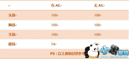 根据上述信息,我们可以看出:被黄金汽锤命中头部、胸口、手部,那么无论是否配置有AC,都将被一枪瞬秒。不过,腿部伤害较低,需二次补枪。