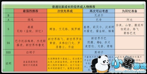 普通玩家成长阶段人物养成推荐表