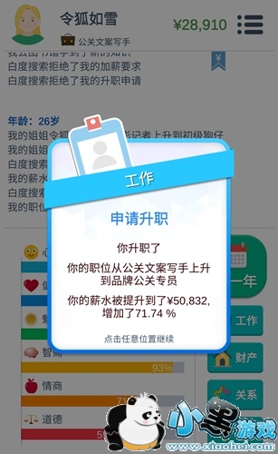 我们前期应聘低级职位,不过情商高对工作有帮助,所以升职也会较快。