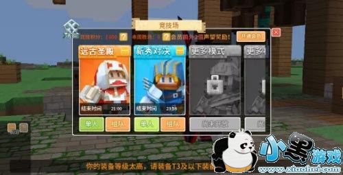 答:【新秀对决】是萌新专属战场,只有身着T3或以下装备才能参加哟,身着高于T3装备(T4-T5/S3-S5)报名时都会被无情拒绝!
