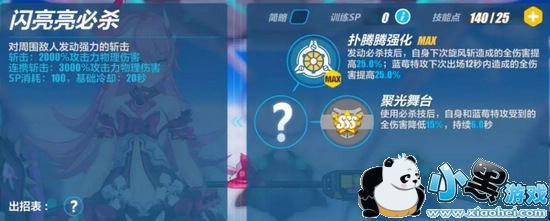 消耗100SP,冷却20s。非常炫的砍一刀,可以浮空敌人。蓝莓特攻(妹妹)在队伍中时伤害更高,特效更炫。但是目前带妹妹放必杀技会断连。