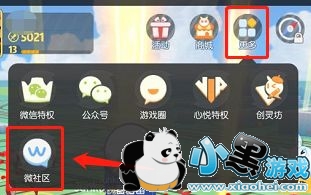 1、点击游戏右上方更多TAB,选择微社区