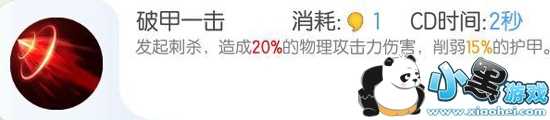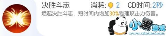 | 使用破甲一击降低敌人的护甲,然后使用决胜斗志增加自身伤害,并且技能释放会触发被动香花宝烛的攻速提升效果,接下来一小段时间内,就可以普通对敌人造成大量伤害。 |