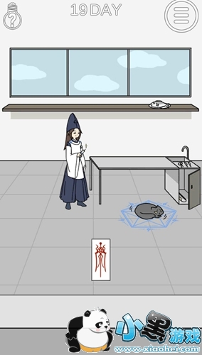 点击护士手里的针筒,然后用针筒扎猫就行了,然后猫会吓得跳进魔法阵,点击符咒过关。