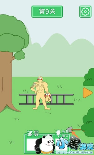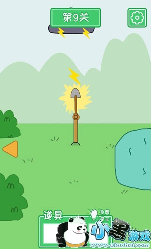 第9关先点击右下边的灌木丛,接着点击铲子,然后点击向右箭头到右边去。